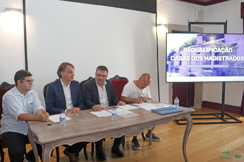 Esta sexta-feira, Benjamim Pereira, presidente do Instituto da Habitação e da Reabilitação Urbana (IHRU, I.P.), deslocou-se a Castro Daire para homologação da assinatura dos autos de consignação da empreitada de reabilitação das antigas residências de magistrados em Castro Daire.
